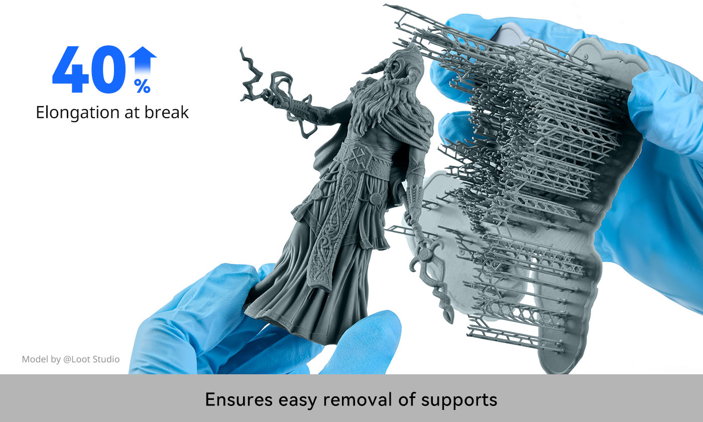 ABS-Like Resin Pro 2 is ideal for printing prototype appearances and structural parts of animation and game action figures, consumer electronic shells, silicone molded parts, load-bearing structural parts, tooling fixtures, and snap-on parts.