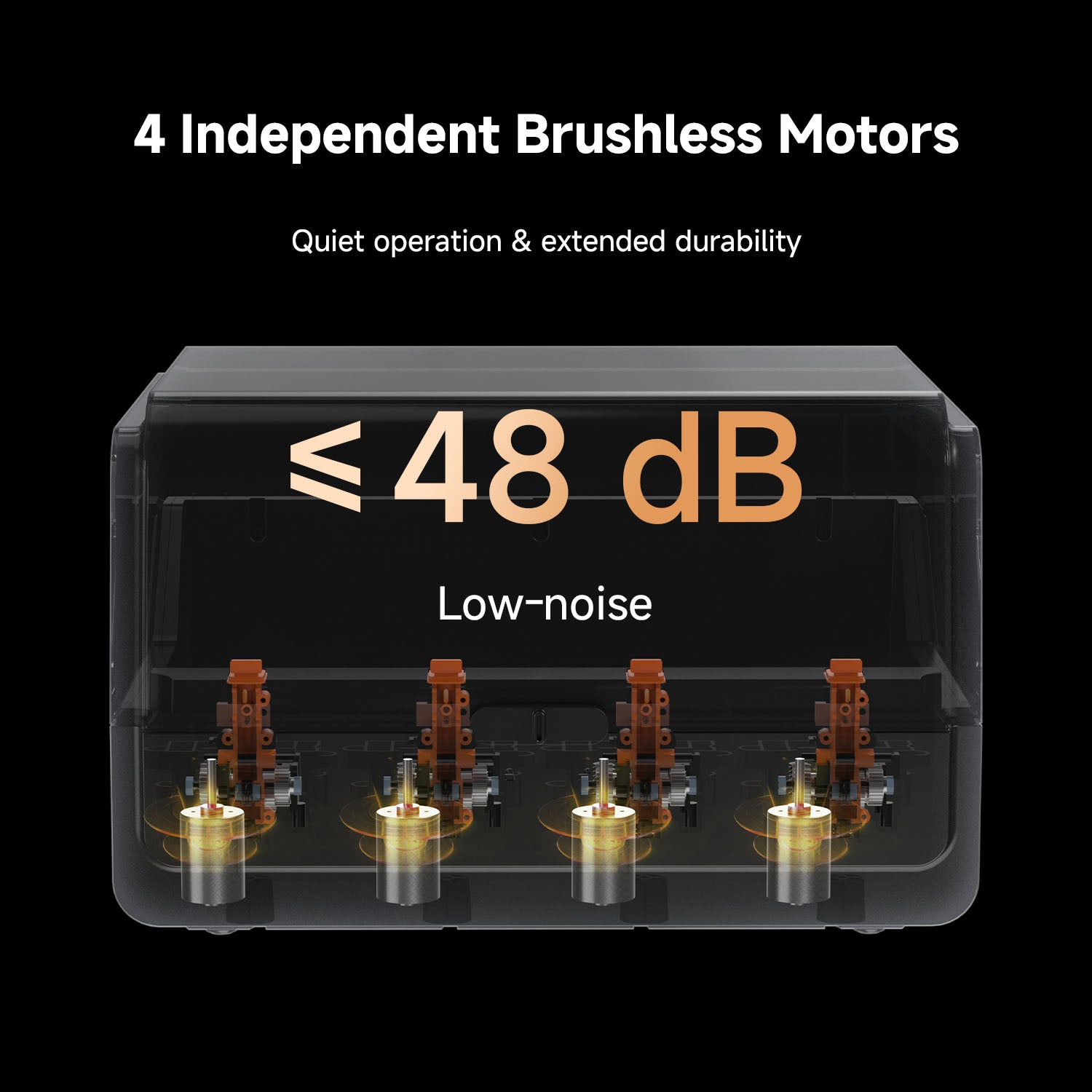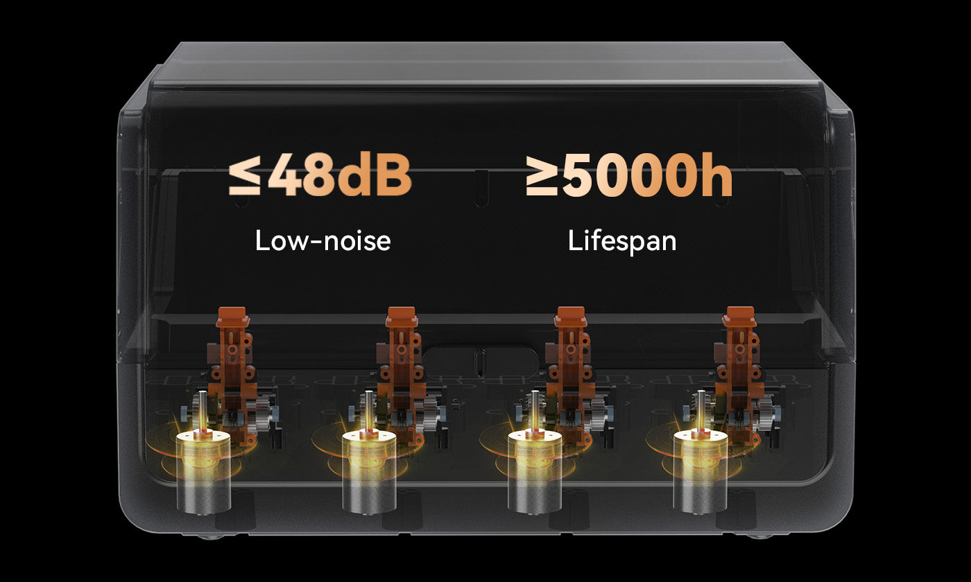 Operates at under 48 dB[2] noise level, with independent brushless motors offering a lifespan of ≥ 5000 hours.