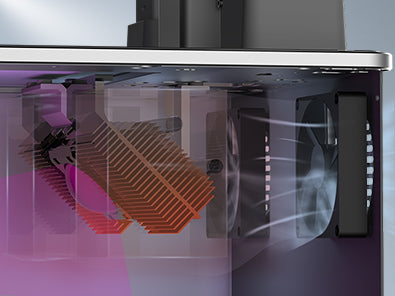 - The combination of software and hardware automatically detects the temperature. It adjusts the speed of the cooling fan according to ensure that the printing environment is kept within 65℃, effectively improving the light source’s lifespan.