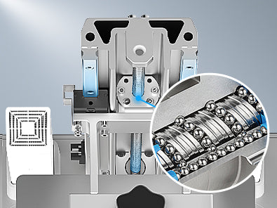 - Compared to the T-shaped threaded rod, the ball screw double-threaded rods provide 0.005mm of improved structural accuracy, which is only half of the ordinary T-shaped rod printer, significantly reducing the layer line effects. The double-threaded rods minimize the lifting resistance of the platform while printing by adopting the rolling friction principle, making the printing speed even faster.