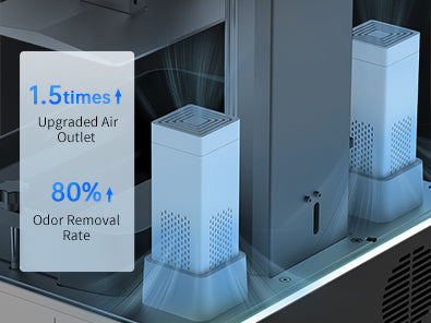 - The double air-purifiers system is embedded with high-density activated carbon inside the air purifiers. The symmetrical double air intake design enlarges the air inlet and outlet area by 1.5 times, achieving 80% odor removal within 10 minutes.