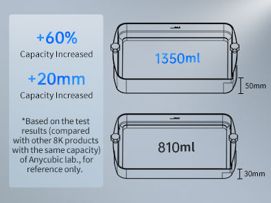 - A 60% larger resin tank eliminates the need to refill resin constantly when printing large 3D models. Compared to traditional FEP film, the application of NFEP film make it easier to detach the prints, increasing the printing success rate by 10%.