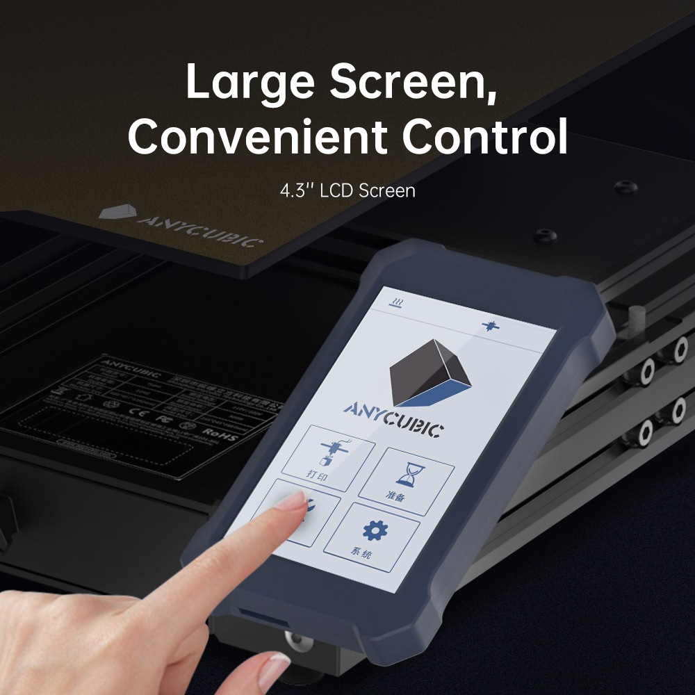 4.3" screen is 51% larger in screen area than a 3.5" ; LCD display is more colorful, transparent and brighter than traditional TFT screen; touch control on LCD is more sensitive than TFT and more intuitive than knob control. Anycubic Vyper brings you the best viewing and operating experience with its 4.3" LCD touch-control screen.