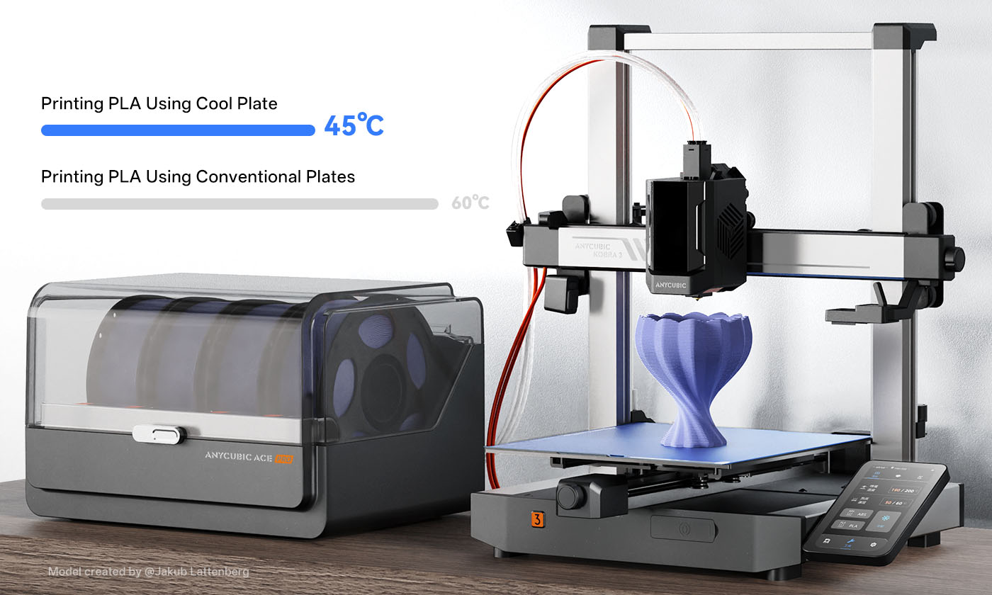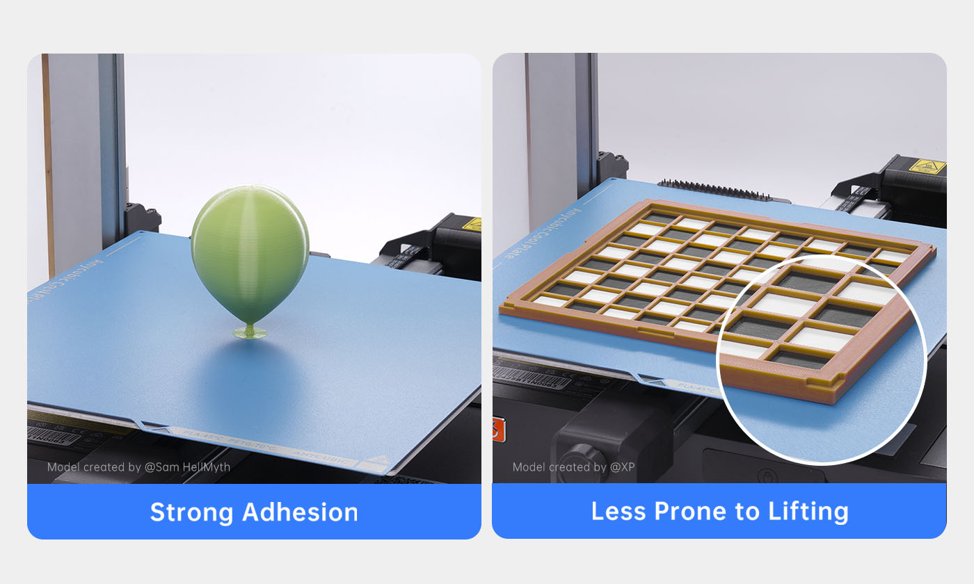 The special surface treatment on the cool plate offers PLA filaments extremely strong adhesion at just 45°C. Effectively decreasing the possibilities of warping and bottom layer separation when printing smaller parts and large scale models.