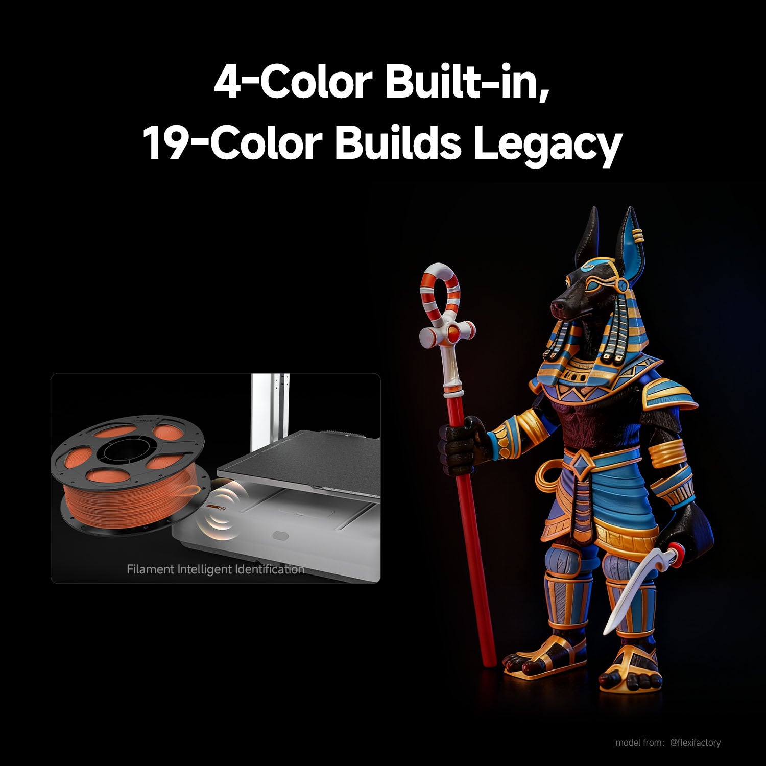 The ACE GEN 2 technology at the core of the Kobra X reduces multicolor filament purge length by a massive 81.25%. This not only dramatically cuts print time but also cuts filament purge waste, turning every spool into a more cost-effective success.