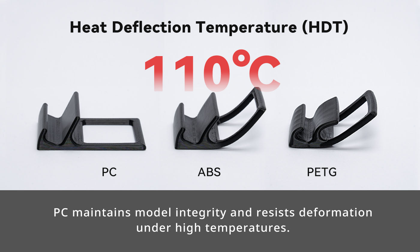 Anycubic’s PC filament is engineered to perform in high-temperature environments. With an exceptional Heat Deflection Temperature (HDT) of 110°C, it provides superior thermal resistance and structural stability. This means your prints—such as outdoor fixtures and lamp housings—will resist warping and cracking even under prolonged heat and stress.