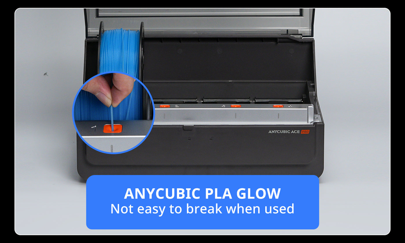 Anycubic PLA Glow is built to last, with excellent resistance to bending and tearing. When paired with the ACE Pro filament box, it delivers a flawless, clog-free printing experience every time.